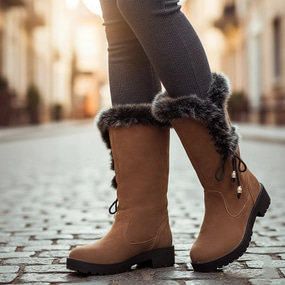 أحذية شتوية نسائية مبطنة بالصوف - مريحة ودافئة، مثالية للطقس الثلجي والأنشطة الخارجية