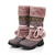 حذاء نسائي للثلج الشتوي المقاوم للماء - تصميم مبطن باللون العنابي مع بطانة من الفرو الصناعي وأشرطة قابلة للتعديل للطقس البارد في الهواء الطلق