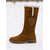 حذاء شتوي نسائي مبطن بالفرو الصناعي باللون البني - مزود بإبزيم وتفاصيل دافئة ونعل سميك للأنشطة الخارجية غير الرسمية والأيام الثلجية وأزياء الشتاء