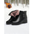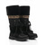 حذاء نسائي أسود شتوي برباط مع حواف من الفرو الصناعي وتفاصيل من الكرات الصوفية ونعل قوي غير قابل للانزلاق للارتداء في الثلج في الهواء الطلق والطقس البارد