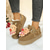 حذاء بكعب إسفيني من جلد الغزال البني للنساء مع أطراف من الفرو الصناعي - تصميم أنيق برباط مع شرابات، حذاء شتوي دافئ ومريح للارتداء غير الرسمي والأنشطة الخارجية