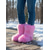 حذاء رياضي نسائي وردي اللون مبطن بالفرو الصناعي برقبة عالية - حذاء كاجوال دافئ ومريح لفصل الشتاء
