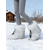 حذاء شتوي نسائي أبيض سهل الارتداء مزين بالفرو مع تفاصيل فيونكة، حذاء ثلج أنيق ومريح للطقس البارد وارتداء العطلات
