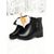 حذاء ثلجي أسود مبطن مقاوم للماء للنساء - جلد صناعي مبطن مع تفاصيل فيونكة، بطانة دافئة ونعل سميك، للأنشطة الشتوية والأنشطة غير الرسمية والخارجية