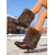 حذاء نسائي بني اللون برباط عند الكاحل وكعب سميك وتفاصيل شرابة - حذاء أنيق بسحاب للإغلاق للخروجات غير الرسمية