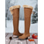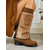 حذاء نسائي من الجلد المدبوغ حتى الركبة مع بطانة من الصوف - حذاء بني كاجوال شتوي للأنشطة الخارجية