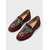 حذاء نسائي من جلد الغزال باللونين العنابي والأخضر مزين بشرابات ونقشة جلد النمر - حذاء مسطح مريح للاستخدام اليومي للعمل والارتداء اليومي