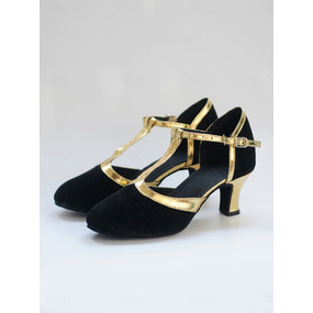 حذاء بكعب عالٍ أنيق من جلد الغزال الأسود للنساء من الخمسينيات مع حزام للكاحل وسحر كريستالي - حذاء بكعب عالٍ أنيق للحفلات المسائية والمناسبات الرسمية