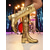 نسائي مناسب للبس اليومي عمل مناسب للحفلات عقدة كتلة كعب أمام الحذاء على شكل دائري أنيق عتيق جلد ظبي مشبك أصفر زهري أحمر