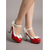 أحذية نسائية كلاسيكية من خمسينيات القرن الماضي - أحذية بكعب متوسط أنيقة بلونين من الجلد الصناعي اللامع باللون الأحمر لحفلات الريترو وفعاليات الروكابيلي &رقص السوينغ في منتصف القرن