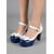 حذاء نسائي بكعب قصير من الجلد اللامع باللون الأزرق الداكن - حذاء رسمي على طراز الخمسينيات من القرن الماضي للمكتب والكنيسة والمناسبات الربيعية