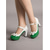 حذاء نسائي بكعب عالٍ مفتوح من الخلف باللون الأخضر من الخمسينيات مع تفاصيل فيونكة - حذاء بكعب متوسط ومقدمة مدببة للمكتب وحفلات الزفاف والحفلات الأنيقة