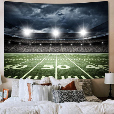 نسيج جداري لملعب كرة قدم احترافي مع خلفية كرة قدم، مثالي لعشاق الرياضة، لتزيين غرفة المعيشة، يضفي أجواءً مميزة على ملعب كرة القدم ليلاً.