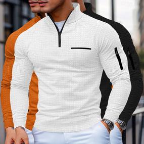 رجالي قمصان بولو الوافل Pullover الرياضة & في الخارج فضفاض رقبة عالية ربع الرمز البريدي كم طويل موضة مريح ألوان متناوبة محكم 3قطع ربيع & الصيف عبر الفصول كل الفصول نحيل 1# 2# 3# 4# 5# 6#