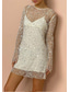 نسائي فستان قصير فستان مزين بالترتر فستان قديم فستان أنيق أنيق رجعي مناسب للبس اليومي حفلة ليلية مناسب للعطلات عادي منقط كم طويل V رقبة أبيض الخريف الشتاء