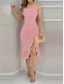 نسائي فستان قصير فستان مزين بالترتر فستان الحفلة فستان كوكتيل فستان زفاف ضيف حفلة فستان الشتاء عطلة عيد الحبّ عادي سهل كم طويل كتف واحد البيج الصيف الربيع الخريف الشتاء