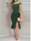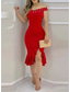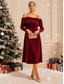 عيد الميلاد المجيد نسائي فستان ميدي فستان بدون أكتاف أنيق مناسب للحفلات حفلة كوكتيل مكشكش ترتر مادة لامعة عادي لون الصلبة كم طويل دون الكتف نبيذ