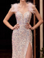 نسائي طبيعي فستان طويل فستان مزين بالترتر زلة اللباس فستان أنيق أنيق عتيق انقسام الفخذ حفلة ليلية مناسب للحفلات عادي بدون كم حمالات سباكيتي رمادي الربيع الخريف الشتاء