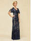 نسائي فستان طويل فستان شيث أنيق حفلة ليلية مناسب للحفلات ترتر دانتيل فراغ خارجي عادي ورد نصف كم رقبة عالية مدورة أزرق البحرية