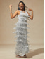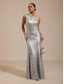 نسائي فستان طويل فستان شيث أنيق حفلة ليلية ضيف حفل زفاف مادة لامعة سباركلي شبكة عادي لون الصلبة بدون كم دون الكتف فضي