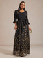 نسائي فستان طويل فستان شكل حرف A فستان تل أنيق حفلة ليلية مناسب للحفلات ترتر مطرز عادي ورق 3/4 الكم V رقبة أسود