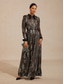 نسائي فستان طويل فستان شكل حرف A أنيق حفلة ليلية مواعدة ترتر ريش كم طويل رقبة عالية مدورة أسود