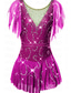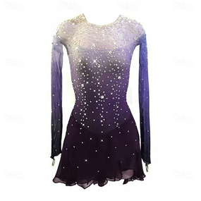 فستان التزلج الراقص نسائي للفتيات تزلج على الجليد الفساتين أرجواني حواف غير منتظمة شبكة عالية المرونة التدريب منافسة ملابس التزلج كلاسيكي الكريستال / حجر الراين كم طويل