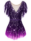 فستان التزلج الراقص نسائي للفتيات تزلج على الجليد الفساتين ملابس وردي يان بنفسجي كما في الصورة بقع حواف غير منتظمة شبكة سباندكس عالية المرونة تمرين متخصص منافسة ملابس التزلج موضة بدون كم