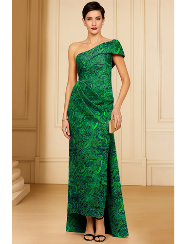 غمد / عمود المساء طول الأرض طول الكعب فساتين متنوعه فستان سهرة مع تنورة خارجية أنيق عتيق بدون كم كتف واحد رسمي ضيف حفل زفاف قماش الجاكار مع روش