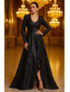 عامودي طول الأرض مطرز بالخرز فستان رسمي فستان والدة العروس فستان سهرة مع عباءة فساتين السهرة الزي الرسمي أنيق مضيئ كم طويل رقبة عالية حفلة ليلية زفاف مترتر مخمل مع روش ترتر انقسام