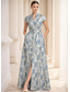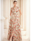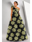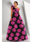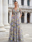 فستان كوينسيانيرا فستان حفلة أنيق بطول أرضي بلا أكمام رقبة مربعة بروم حفلة مساء مزينة بطبعة زهور شق