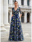 A-الخط حورية البحر طول الأرض فساتين السهرة أنيق زهري بدون كم V رقبة حفلة ليلية زفاف جيبة ساتان قماش الجاكار مع كشاكش