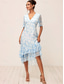 فستان زفاف نسائي، فستان عادي، فستان ميدي، دانتيل، شيفون، مرقع، كاجوال، رقبة دائرية، أكمام بطول 3/4، فساتين كوكتيل، فساتين رسمية، لون أزرق