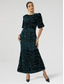 فستان ماكسي من الشيفون المتدرج بتصميم انسيابي مزين بأزهار متفتحة