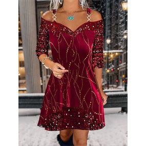 فستان ميني بوهو نسائي، فستان غير رسمي، فستان صغير، فستان تي شيرت، فستان شمس، أنيق، غير رسمي، عطلة، يومي، مقاس عادي، رسومات قصيرة الأكمام، ياقة دائرية، خمري، وردي، أزرق، أخضر، ربيع