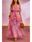 فستان ماكسي شيفون نسائي، فستان صيفي، فستان ضيق، فستان بقصة حرف A، فستان بقصة واسعة من الأسفل، فستان مناسب لحفلات العطلات، حفلات الشاطئ، حفلات الزفاف، قصة عادية، فستان مزهر بدون أكمام، مكشوف الكتفين،