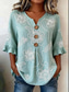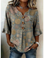 نسائي قميص مكشكش طباعة ورد الرسم العطلة كاجوال بوهو كم قصير نصف كم رقبة عالية مدورة قمصان طويلة فضفاض مناسب للبس اليومي أزرق أصفر أخضر داكن رمادي الصيف الربيع