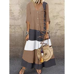 نسائي فستان طويل فستان شكل حرف A كاجوال مناسب للبس اليومي عادي ورد 3/4 الكم V رقبة أزرق أخضر مشمشي البيج الصيف الربيع الخريف