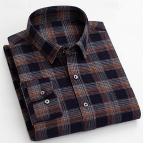 رجالي قميص قميص غير رسمي تحقق القميص زر حتى القميص قمصان منقوشة أحمر أزرق أخضر كاكي رمادي كم طويل سهل طوي عطلة مناسب للعطلات جيب ملابس قطن خليط قطن موضة كاجوال مريح