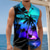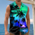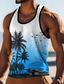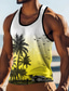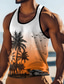تيشيرت رجالي بدون أكمام، بياقة دائرية، مزين برسومات أشجار النخيل وغروب الشمس على الشاطئ، مناسب للصيف والشاطئ والعطلات، متوفر بمقاسات S، M، L، XL، XXL، XXXL