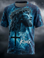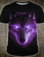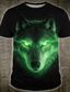 تيشيرت رجالي مطبوع عليه صورة ذئب بعيون نيون متوهجة، مستوحى من عالم الخيال العلمي السايبربانك، بقصة عادية، وأكمام قصيرة، وياقة دائرية، مناسب للارتداء اليومي، متوفر بمقاسات S، M، L، XL، XXL، XXXL