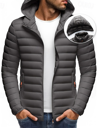 رجالي معطف شتوي سترة البخاخ سترة هوديي القطن الحرير التقليد كنزة مع قبعة الأماكن المفتوحة كاجوال / يومي قصيرة ضد الهواء الدفء خريف & شتاء لون خالص / عادي فضي أسود أبيض سترة البخاخ