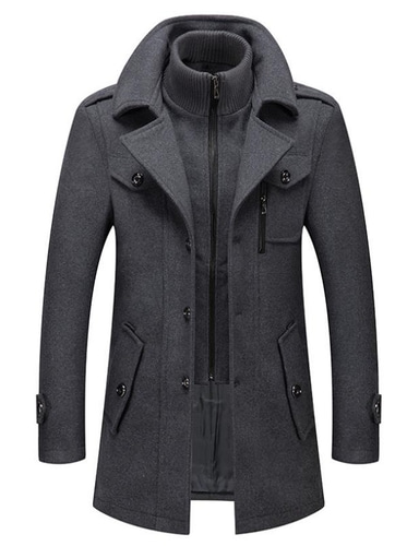 رجالي معطف شتوي معطف صوف معطف سترة المكتب عمل الشتاء صوف ضد الهواء دافئ ملابس خارجية ملابس مكتب / الأعمال لون الصلبة جيب مرتفعة زر واحد صدر واحد