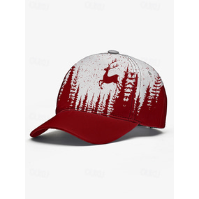 قبعة بيسبول بطبعة غزال الغابة باللونين الأحمر والأبيض للرجال - قبعة خارجية غير رسمية قابلة للتعديل لمحبي الطبيعة