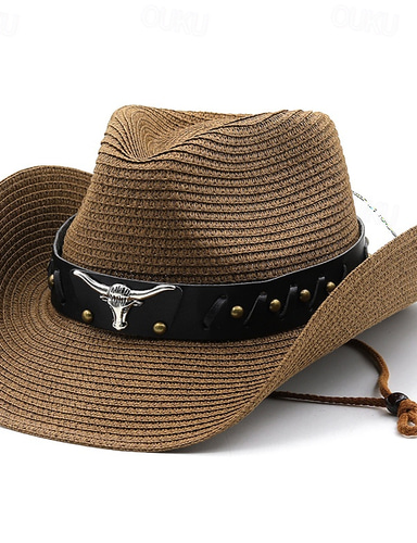 قبعات رعاة البقر النسائية ذات الطراز العرقي وقبعة بنما وحزام البقرة المزخرفة بالقبعات الغربية