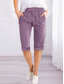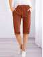 نسائي شورت مستوحى من الكتان بناطيل كابري بنطلون من القطن والكتان شورتات نشيط بسيط كاجوال طول الركبة خصر عالي سهل رباط جيب مرونة الخصر التنفس إمكانية ناعم مريح مرن نسبياً