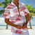 رجالي طيور النحام قميص البولينج زر حتى القميص كم قصير ستايل هاواي رسمي الرياضة الصيف طوي جيب وردي بلاشيهغ