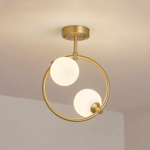 [الأقمشة والمواد]: مصنوعة من المعدن عالي الجودة والزجاج المعالج لتحمل استخدام طويل، تجمع هذه الإضاءة السقفية بين المواد الحديثة لتقديم مظهر سلس ومصقول. تضيف اللمسة الذهبية المصقولة لمسة من الفخامة، بينما توفر كريات الزجاج المزخرف إضاءة متشتتة وبيئية، مما يخلق أجواء دافئة ومرحبة. [التصميم والشكل]: تتميز هذه الإضاءة السقفية بتصميم فني وذو طراز بسيط، حيث تحتوي على مصابيح كروية مزدوجة محاطة بأشكال زجاجية هندسية مصقولة. يبرز الإطار المعدني الدائري المزود بلمسة ذهبية مصقولة الطراز العصري والحديث، مما يجعله إضافة راقية لأي مساحة. [أبرز التصميمات]: تتمثل الميزة البارزة لأسطوانة الضوء في استخدام الأشكال الهندسية في تصميم مدمج، مما يعزز الجاذبية الجمالية مع ضمان انسجام مثالي مع الديكورات الحديثة. تضيف اللمسة الذهبية المصقولة على الإطار لمسة أنيقة، مما يكمل مظهر الأسطوانة الجذاب. [المناسبات والاستخدام]: مثالية للمساحات المعيشية الحديثة، تعتبر هذه الإضاءة السقفية مثالية لغرف المعيشة، وغرف النوم، والمداخل، والمكاتب المنزلية. تناسب اتجاه إضاءة البيئة أجواء مختلفة، سواء كنت تسترخي في المنزل أو تستضيف الضيوف، مما يضيف سحرًا وأسلوبًا لأي غرفة. [الحجم والتوصيات]: مصممة لتناسب الغرف التي تصل مساحتها إلى 5 أمتار مربعة، تتضمن هذه الإضاءة مصباحين LED بقاعدة G9 تناسب النطاقات الكهربائية من 110-120 فولت أو 220-240 فولت. تعتبر هذه الإضاءة مثالية للمساحات التي تتطلب مزيجًا من اللمسة الفنية والإضاءة البيئية، مما يضيف لمسة راقية لأي إعداد.
