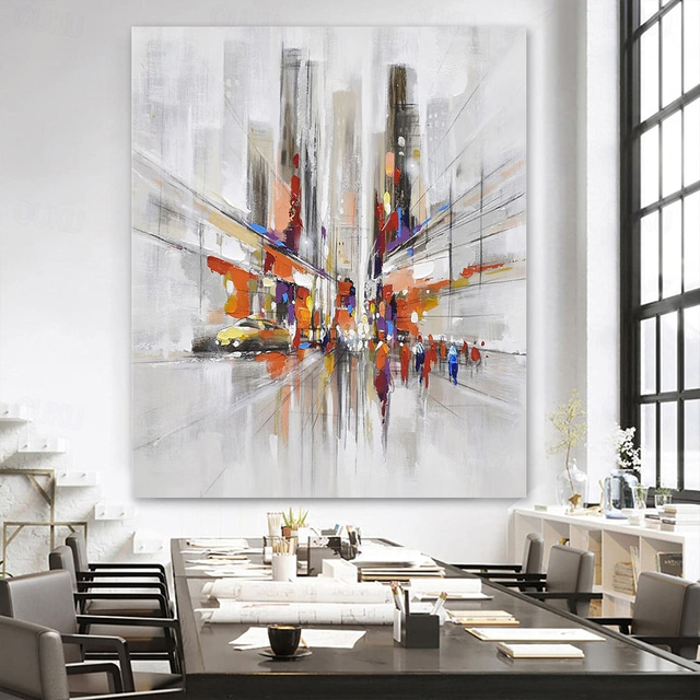 [القماش]: تم تصميم هذه اللوحة على قماش عالي الجودة يعزز من حيوية ونسيج اللوحة الزيتية، مقدماً لمسة نهائية متينة واحترافية. يضمن مادة القماش خلفية قوية تحتفظ بوضوح الألوان. [الأسلوب/الشكل]: تتميز هذه القطعة الفنية بشكل عمودي، وتأتي بحجم أنيق كلوحة متوسطة، تقيس 20 × 24 بوصة (50 سم × 60 سم). يتناسب تصميمها الحديث والتجريدي تمامًا مع الجماليات المعاصرة، مقدماً مزيجاً لافتاً من الأسلوب الانطباعي وتشكيل جريء. [أبرز ميزات التصميم]: تُظهر اللوحة منظرًا طبيعيًا تجريديًا ساحرًا يجمع بين عناصر حضرية مع ألوان نابضة مثل البرتقالي، الأحمر، الأزرق، والأصفر. تشير ضربات الفرشاة إلى الحركة والطاقة، مما يعكس الجو الحيوي لحياة المدينة. إنها مشدودة وتقدم طريقة سهلة لكنها أنيقة لإدخال الفن في أي مساحة. [سيناريوهات الاستخدام]: مثالية لتعزيز جو مجموعة متنوعة من الغرف، تتناسب هذه اللوحة بشكل جميل في غرف المعيشة، غرف النوم، غرف الطعام، المكاتب، وأيضًا في الفنادق أو الممرات. تجعل ألوانها النابضة وأسلوبها العصري منها نقطة محورية رائعة للفضاءات التي ترغب في لمسة فنية. [إشعار الحجم]: على الرغم من تقديمها كلوحة متوسطة الحجم، تتوفر إرشادات مفصلة حول الحجم لضمان توافقها مع المساحة المختارة، مما يجعلها مناسبة لعشاق الفن وجامعي القطع الذين يبحثون عن ديكور تعبيري.