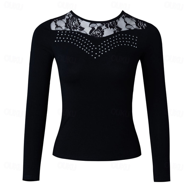 الرقص اللاتيني رقص الصالة بلايز دانتيل لون نقي ربط نسائي أداء التدريب كم طويل ارتفاع عال بوليستر